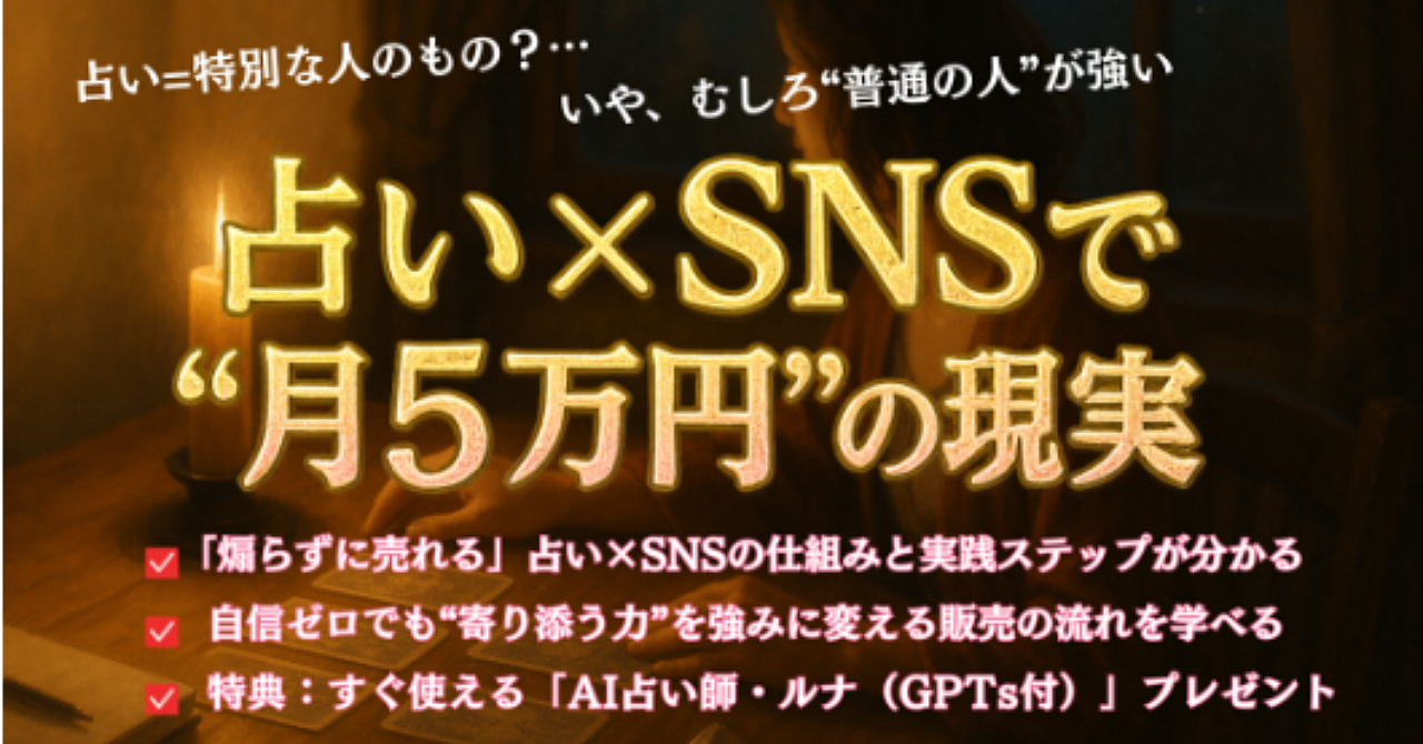 【ゼロイチGPTs付】占い×SNSで「私にもできた」…普通の主婦がたった1ヶ月で初収益を出せた秘密の話