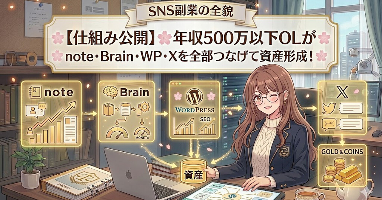 【SNS副業の全貌】年収500万以下OLが、note・Brain・WordPress・Xを全部つなげて資産形成する仕組みを公開🌸