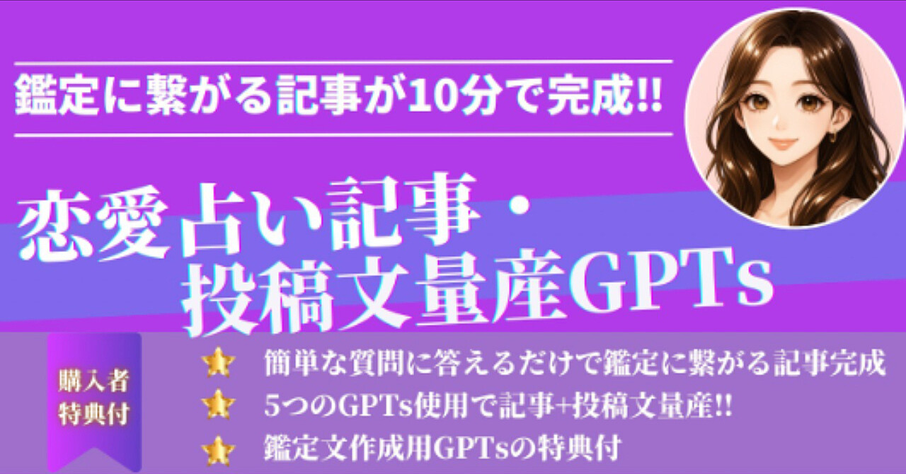 鑑定に繋がる記事が10分で完成!!恋愛占い記事・投稿文量産GPTs