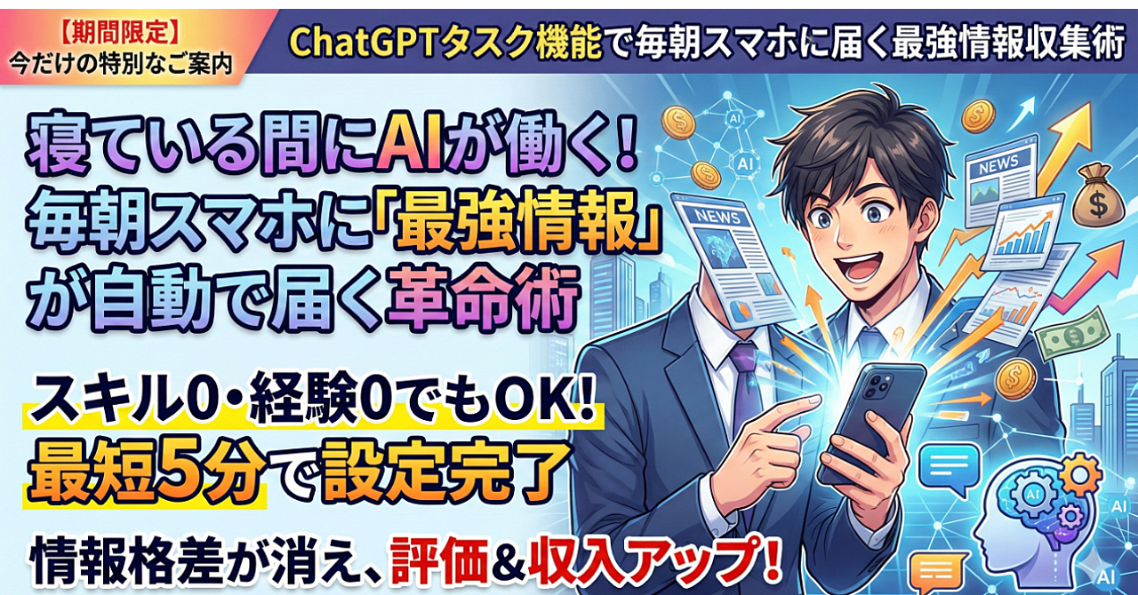 AIで仕事がデキる人に!ChatGPTタスク機能で毎朝スマホに届く最強情報収集術