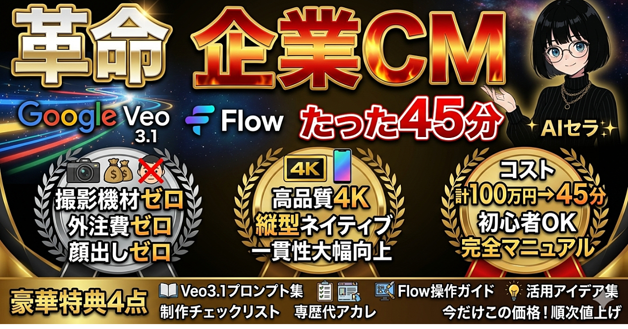 【革命】Google Veo 3.1×Flowで企業CMをたった45分で制作!撮影機材ゼロでも高品質動画が作れる完全マニュアル