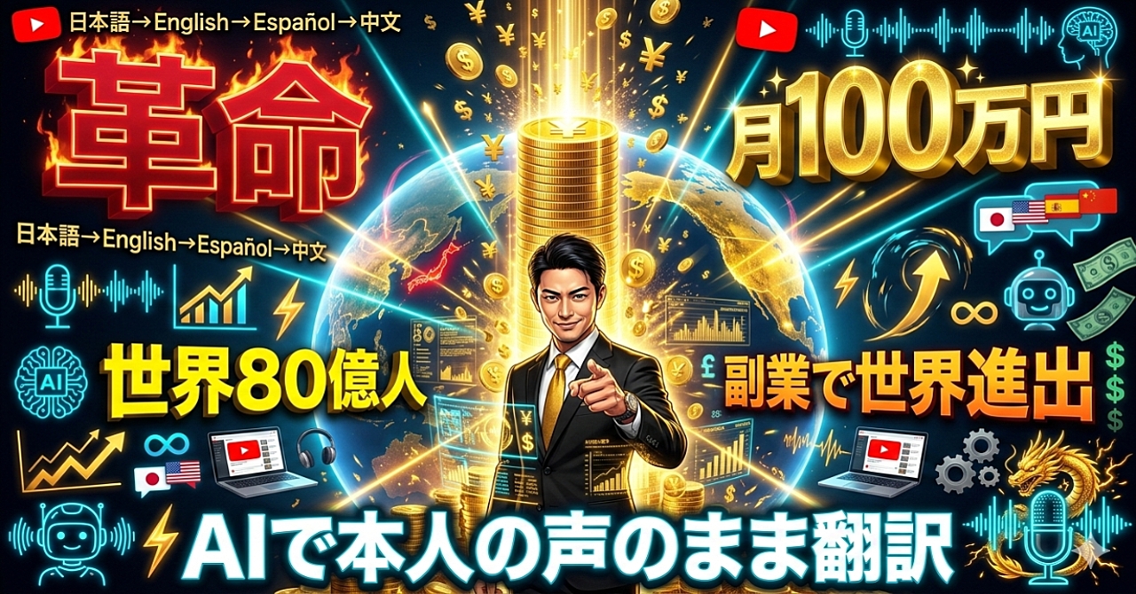 【革命】YouTube動画をAIで「本人の声のまま」翻訳日本コンテンツを世界80億人に届けるAIビジネス 海外YouTube収益化ガイド 副業月10万〜100万を目指す AI動画翻訳エージェンシーの作