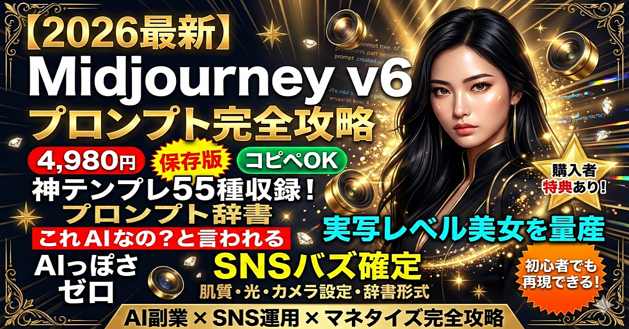 【2026最新】Midjourney v6 プロンプト完全攻略「これAI?」と言われる実写レベル美女を作るプロンプト辞書 & 神テンプレ保存版