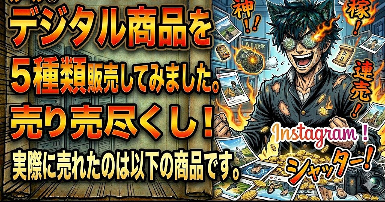 📌【デジタル商品を5種類】販売してみました。実際に売れたのは以下の商品です。