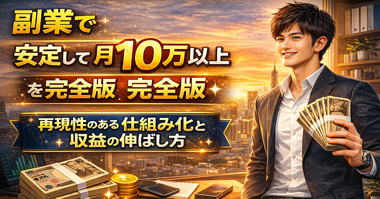 「副業で“安定して月10万以上”を稼ぎ続ける完全版。再現性のある仕組み化と収益の伸ばし方」