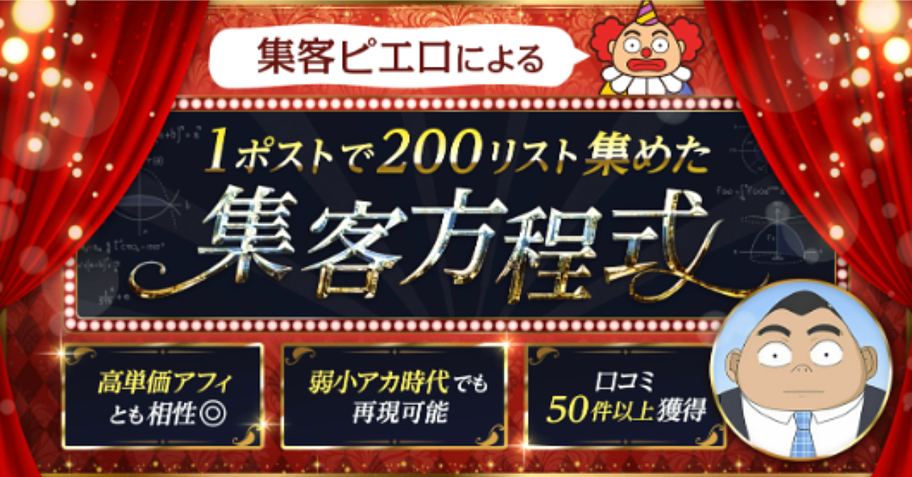 集客ピエロによる、1ポストで200リストを集めた【集客方程式】