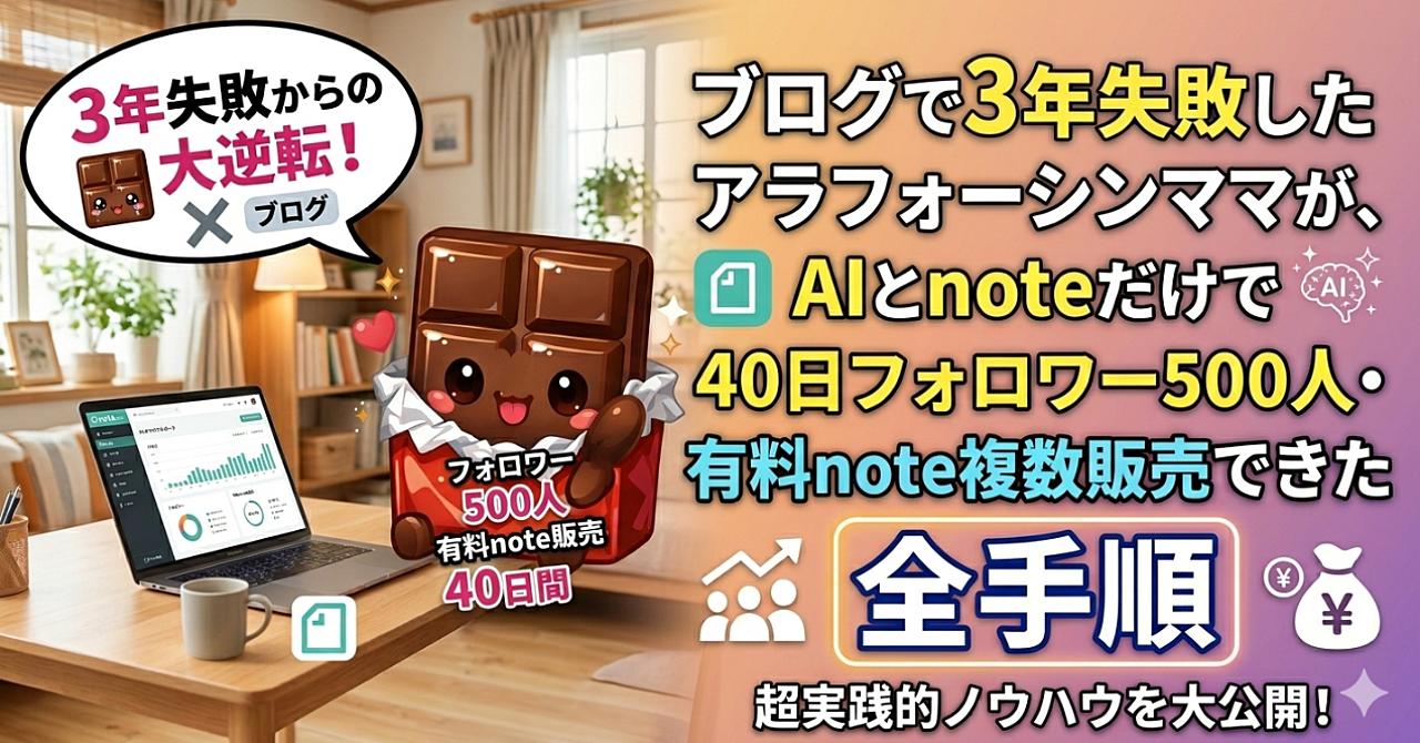 【副業失敗経験者🌀必見!】3年も溶かしたアラフォーシンママの私でも、AIとnoteだけで40日でフォロワー500人・有料note販売できた全手順公開