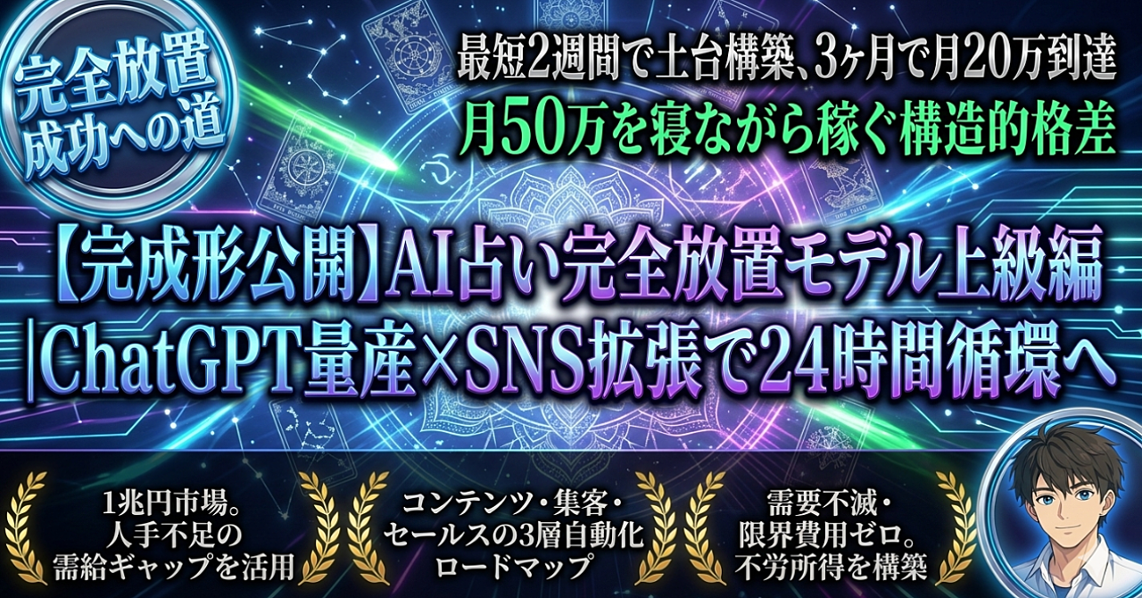 【完成形公開】AI占い完全放置モデル上級編|ChatGPT量産×SNS拡張で24時間循環へ