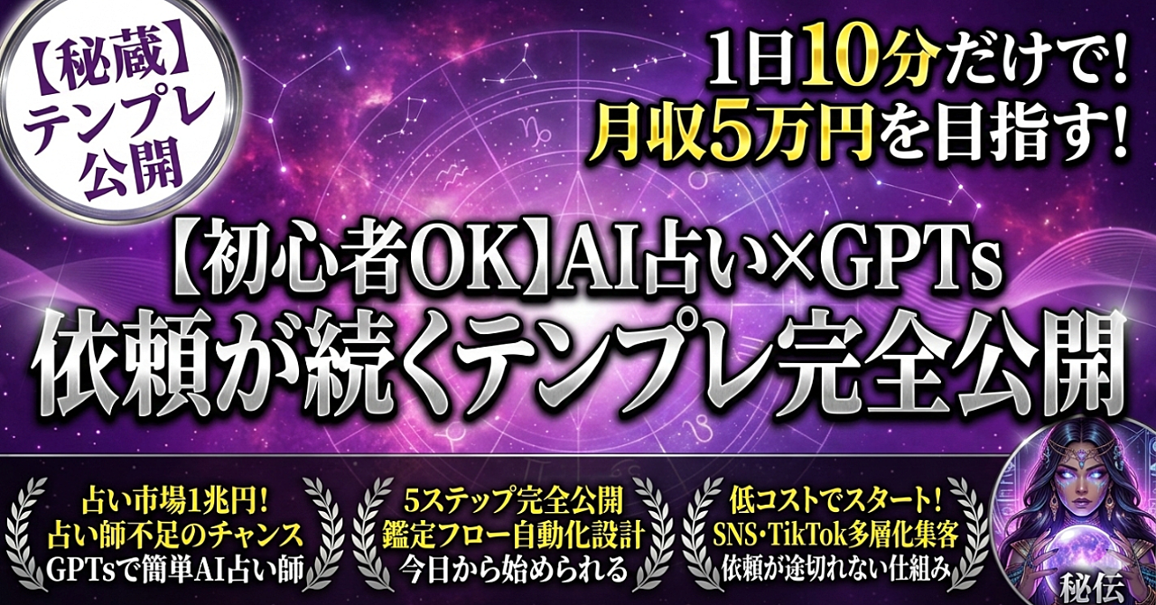 【初心者OK】1日10分だけ!AI占い×GPTsで依頼が続くテンプレ完全公開