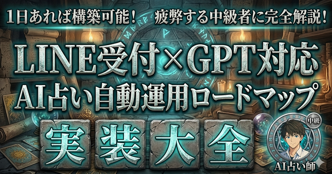 【半自動化構築】AI占い自動運用ロードマップ中級編|LINE受付×GPT対応設計大全