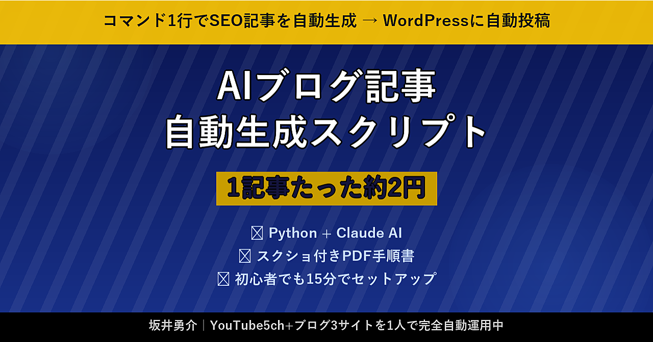 Claude AI × Python でブログ記事を自動生成&WordPress自動投稿する方法【1記事約2円】